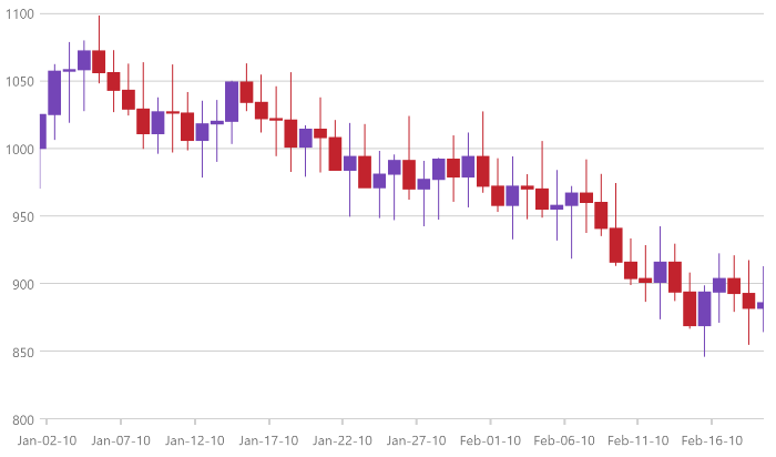 Below is a screenshot demonstrating the usage of the OrdinalTimeXAxis with a FinancialPriceSeries:
