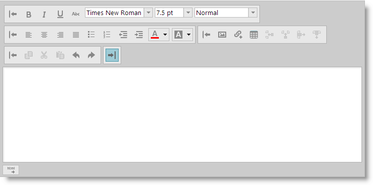 The screenshot below demonstrates how the igHtmlEditor looks as a result of the following settings: