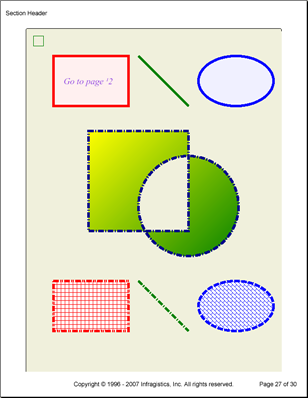 The IGraphics Interface is where you will be doing most of your graphics implementation in your reports. Through this interface, you can add hyperlinks anywhere on a page, draw any shape, fill and clip those shapes, and even scale, skew, or transform the shapes.