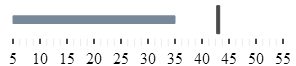 The primary measure of the igBulletGraph is visualized by its performance bar. Its value is managed by the value property setting. For this example, set the value property to 35.