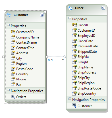 Add an ADO.NET Entity Data Model for the Customers and Orders tables in the Northwind Database and name it NorthwindModel.