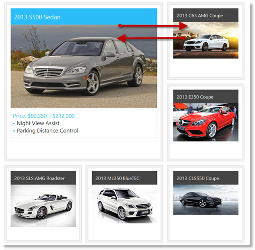 ASP.NET MVC Basic Usage: This sample demonstrates using the ASP.NET MVC helper for the igTileManager control.