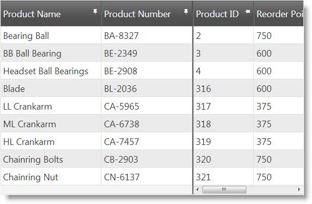 The igGrid™ Column Fixing feature allows you to pin the columns on the
