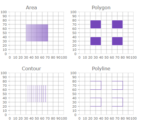The igShapeChart is a lightweight, highly performant chart. This chart can be easily configured to display scatter X/Y points, shape files or any custom shape that you can define using an array of arrays of X/Y points. The igShapeChart control is using a smart data adapter in order to analyze bound data and select an appropriate visualization to render. However, it is possible to specify which chart type the igShapeChart will use by setting the chartType property to one of the following values: Area,Bubble,Contour,HighDensity,Point,Line, Spline, Polygon, or Polyline.