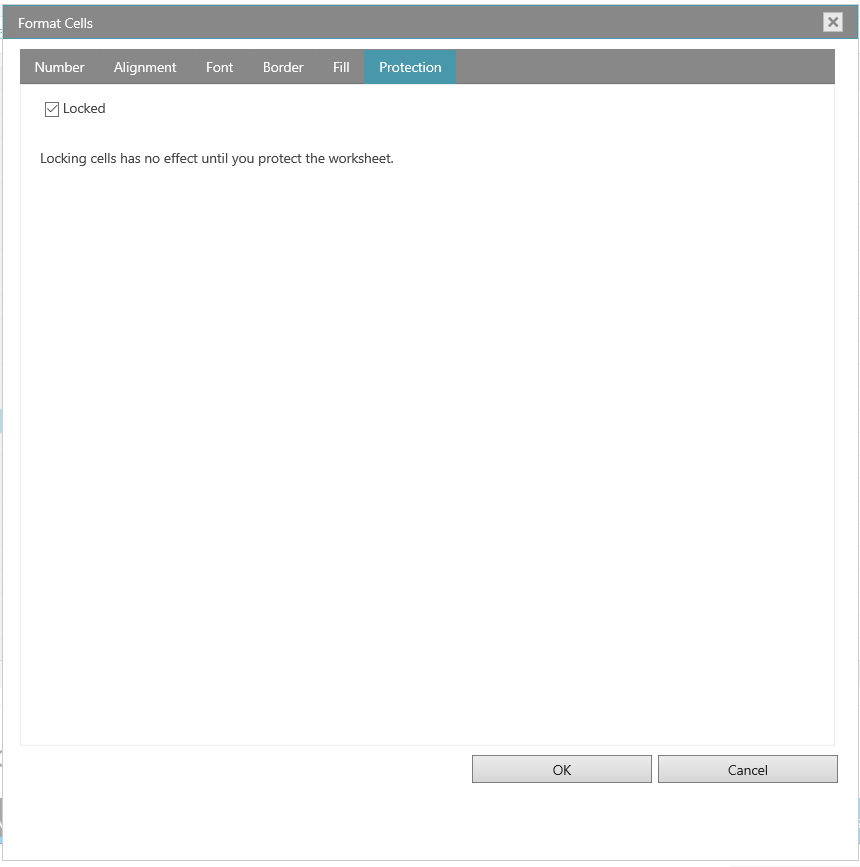 The Protection tab allows you to lock your worksheet to protect your data and formulas. This option does not take effect unless you also protect your worksheet.