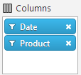 The screenshot below demonstrates, an igPivotDataSelector control in which a data slice is being defined and arranged by dragging the Product hierarchy from its metadata tree node to the Columns drop-area. The result of this user action would be the hierarchy being added to the columns collection of the data source and, providing the igPivotGrid is bound to the same data source, the root member(s) of this hierarchy displayed in the column headers area.