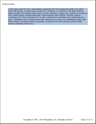 The Stretcher element is a non-visible layout element whose only purpose is to stretch content to the end of a page. Normally, a layout element will resize to fit the content it encapsulates. This may be an undesired effect if the layout element includes a background color or image. When you call the AddStretcher method off a layout element, that element will stretch to the end of the page, even if its content does not. The two images below show how an element with its background color set to LightSteelBlue would look like without and with a Stretcher element.