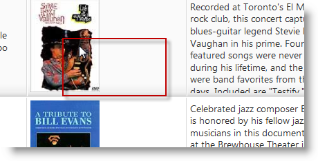 In this example, the tooltips are configured to display over every column that contains text and not over the columns that store images.