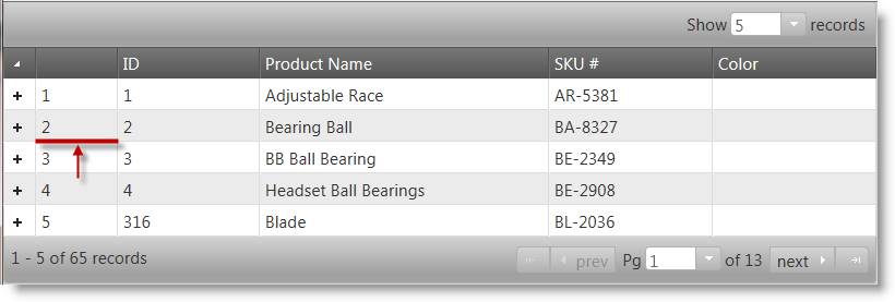The screenshot below demonstrates how a grid with offset row numbering looks:
