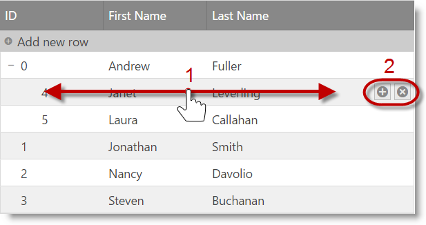 | enableAddChild (true) | Specifies whether to enable or disable adding children to rows |