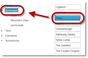 • Cascading igCombo: The cascading functionality of the igCombo™ control requires configuring at least two instances of the control bound together in parent-child relationships. When a value from the parent igCombo is selected, then the values in the child are filtered.