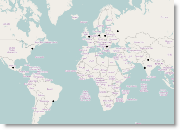 This procedure guides you through the steps for adding a map with basic functionality to a web page in the context of the geographic symbol series that plots points on the map. Geographic coordinates in the data bound to the control specifies these plotted points. The example shows an HTML/jQuery implementation. It includes the proper igLoader™ configuration for using the igMap control, binding to a local JavaScript array and configuring the essential options for the operation of the control.