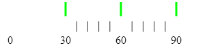 If you customize the labels and the major tick marks, you will more likely need to make sure they align to each other; to achieve alignment, set the same value for the tick marks interval (interval property) and the label interval (labelInterval property). (By default, they are aligned because the labelInterval property is not set and uses the value set for interval.)