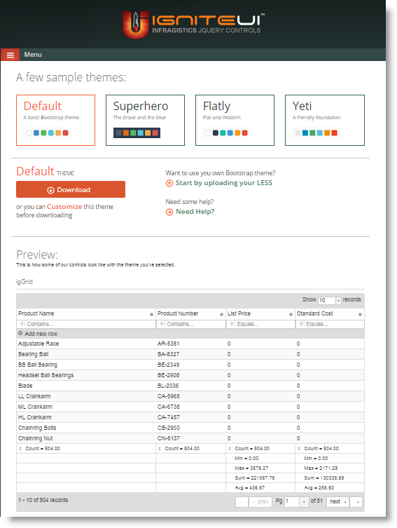 Bootstrap theming Ignite UI for jQuery controls now support Bootstrap theming.