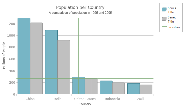 Hover Interactions – Crosshair Layer: This sample demonstrates the Crosshair Layer that provides crossing lines that meet at the actual value of every series that they are targeting. The sample options pane allows you to edit the properties of the layer, such as changing the thickness of the crosshair.