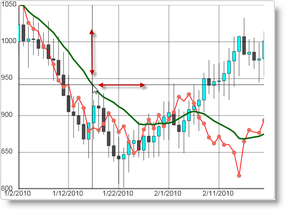 Cross-hairs are two lines crossed at right angle that are displayed on the current mouse position when the mouse pointer is over the chart. Crosshairs can help visually align data in the chart series with the equivalent position on the associated axes.