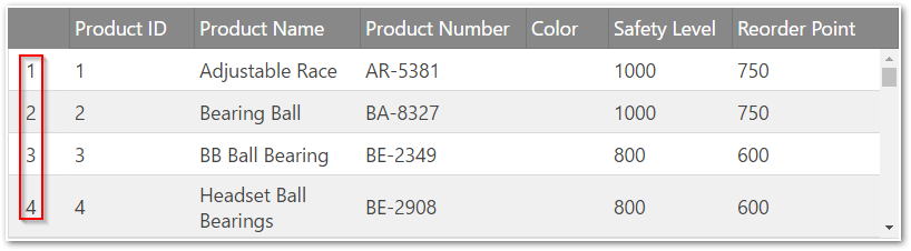 In the picture demonstrates a grid with, row numbering enabled.