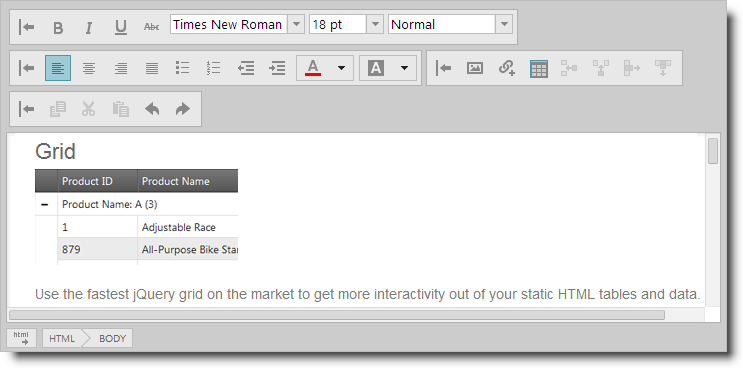 Working with the igHtmlEditor
