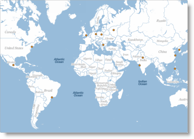 The following picture shows a geographic shapes series map with some custom colors applied.