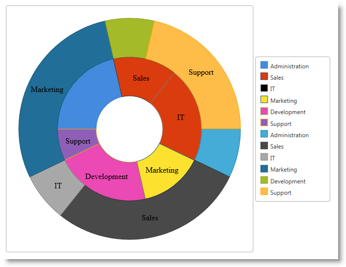 igDoughnutChart™ New Control (CTP) The igDoughnutChart™ control is similar to the igPieChart –proportionally illustrating the occurrences of a variable. The igDoughnutChart can display multiple variables in concentric rings, and provides built-in support for visualizing hierarchical data.