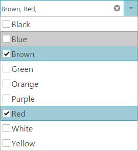 The igCombo control supports single and multiple selection. With multiple selection enabled the user can select multiple items from the dropdown list. During data entry users can also use a comma (,) to select multiple values while typing in the input box.