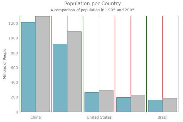 The Major and Minor intervals feature of the igDataChart control allows you to apply intervals with the specified color and thickness to the x and y axes of the igDataChart control.