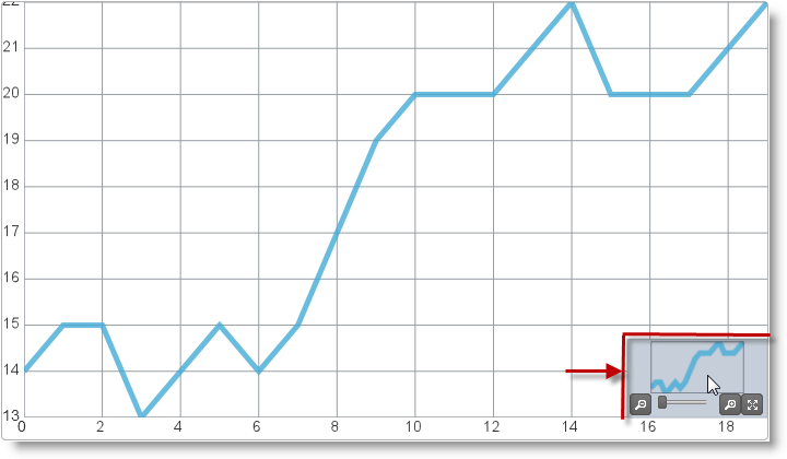 Navigation in a chart is possible with the help of zooming, panning, and the Overview Plus Detail (OPD) window. Zooming is done by mouse scroll or by dragging a rectangle over an area that you want to magnify. Panning is done by dragging with the mouse when the chart is zoomed in.