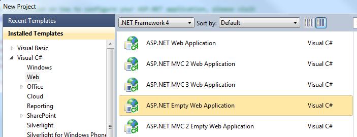 Open Visual Studio and create a new ASP.NET Empty Web Application and name it ‘igDataSourceWCFService’: Note: As stated above, the igDataSource component is server-agnostic. Therefore this exercise demonstrates how you can implement WCF support in ASP.NET WebForms as opposed to ASP.NET MVC which Ignite UI for jQuery supports out-of-the-box.