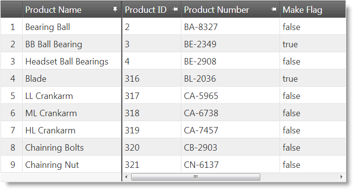 | syncRowHeights | bool | true | The heights of the rows in the Fixed Columns area are synchronized with heights of the rows in the Non- Fixed Columns area. |