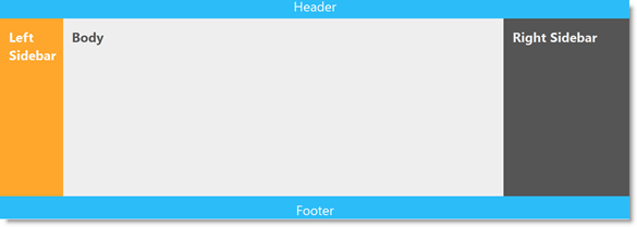 The visibility of the Header, Footer,and Sidebars is configurable, as well as the relative width of the Body and the Left Sidebar and Right Sidebars.