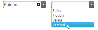 Cascading igCombo: The cascading functionality of the igCombo™ control requires configuring at least two instances of the control bound together in parent-child relationships. When a value from the parent igCombo is selected, then the values in the child are filtered.