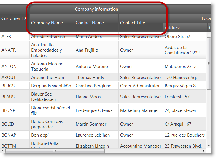 Multi-Column Headers (igHierarchicalGrid)