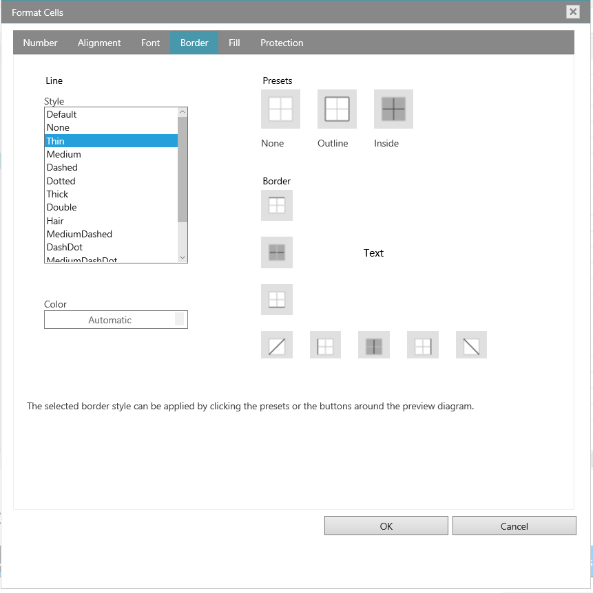 | FormatCells Dialog | Spreadsheet FormatCells Dialog |