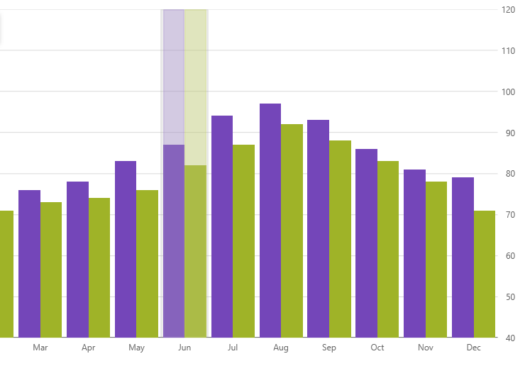 Category Highlight Layer renders a vertical rectangle that stretches from the start to end of the category that is closest to the mouse cursor. This rectangle is filled with semi-transparent gray color by default.