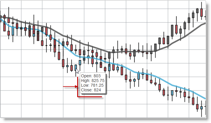 Tooltips are small panels that appear on the current mouse position and display information predefined in a tooltip template. Usually that is the numeric value depicted on the chart on the particular point and/or some other related information.