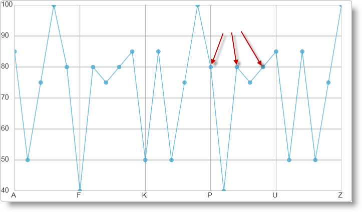 On the figure below you can see a chart with circle markers (some markers are designated by red arrows).