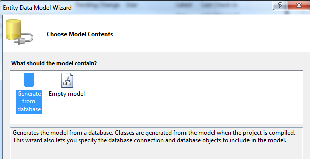 Next, add an ADO.NET Entity Data Model named AdventureWorksEntities.edmx to the project and point it to the AdventureWorks database: