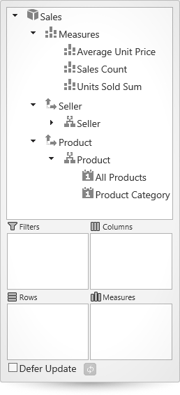 Specify the hierarchy’s position displayFolder string A string in the following format: “Folder\\Inner Folder” In an igPivotDataSelector such a hierarchy will be displayed like this: No