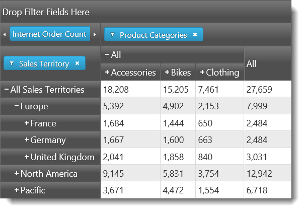 igPivotGrid Overview: This topic provides conceptual information about the igPivotGrid™ control including its main features, minimum requirements, and user functionality.
