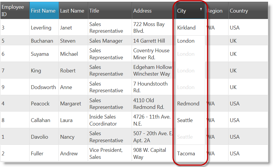Column Moving is a feature of the igGrid/igHierarchicalGrid that enables changing the position of a column in the grid and, in effect, reordering of the grid’s columns. This can be performed either by the user from the grid interface or programmatically through the API of the Column Moving feature. The user can move columns by either dragging them or through selecting the desire column position from a special column moving interface (invoked with a button in the column header). Dragging is not supported on touch-enabled devices.