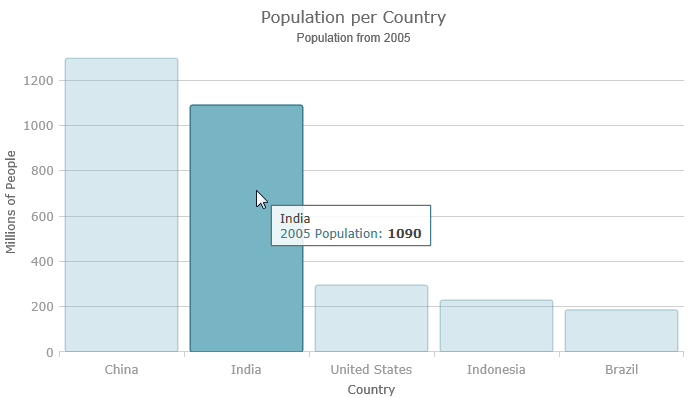 This feature allows you to highlight an entire series or individual items within the series. For example, highlights the entire line in a series such as the lineSeries as it is all one shape; however, highlights can be applied to each individual column in a series such as columnSeries. Individual markers can be highlighted in all supported series.