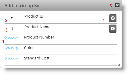 | modalDialogGroupByButtonText | Specifies the text of Group By button in the dialog |
