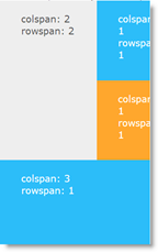 • Grid Layout with colspan and rowspan Support: This sample demonstrates the ability of the igLayoutManager control’s Grid layout to allow items to have arbitrary position in a grid with a predefined size including for items with different rowspan and colspan settings.