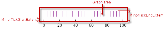 • Along the scale – the Graph area begins at either edge of the control and ends at the opposing edge of the control. Both the starting and ending positions of the scale are measured against the starting edge of the Graph area (the left edge at horizontal orientation or bottom edge at vertical orientation).