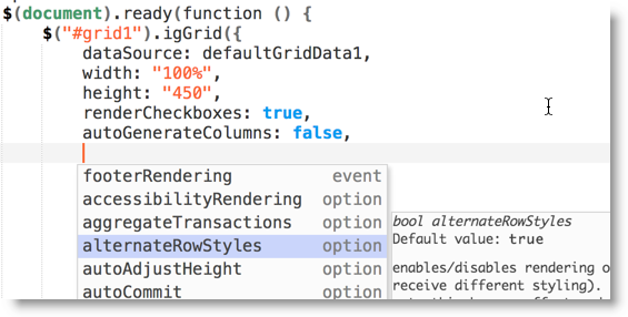 The igGrid™ Selection feature is completely reworked. As a result the codebase is reduced with 30% and some of the most resource intensive operations like selecting all the rows in a grid are optimized and now take less time to complete.