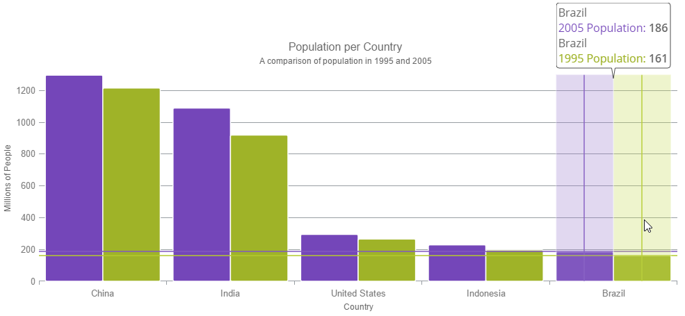 In order to implement all hover, highlight and tooltip interactions, layers are added to the igDataChart control, such as the Crosshair and Category Highlight layers.