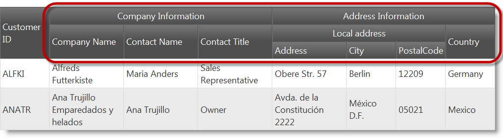 column.MultiColumnHeader().HeaderText("Company Information").Group(c => {