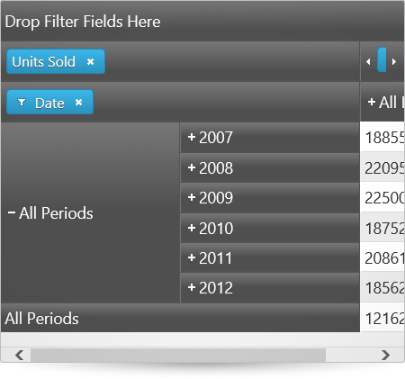 The igPivotGrid control can slice, dice, drill down or up, and pivot data taken from an OLAP cube or from a flat data collection. With its arsenal of features, igPivotGrid allows you to build sophisticated data-driven applications.