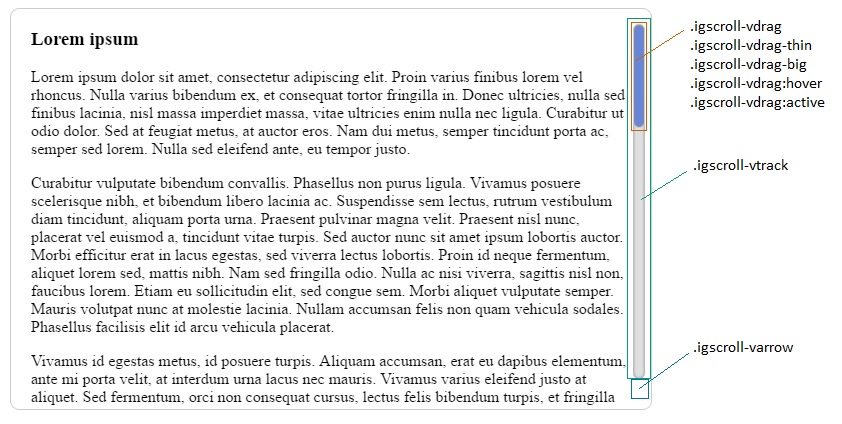 Note: Similar classes are used for the horizontal scrollbar. Their naming can be seen in the igScroll API.