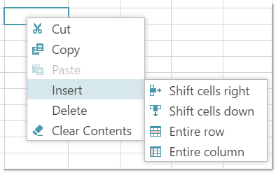 Note: If the user has more than one worksheet selected and perform clipboard operation on cell(s) in the active worksheet, all selected worksheets will be affected. Cut operation will move cells' content from all selected worksheets to the clipboard, copy operation will duplicate cells' content from all selected worksheets and paste operation will copy clipboard content into the specified cells in all selected worksheets.